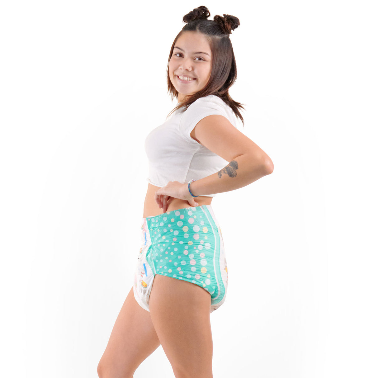 Pair with a cute snapsuit or frilly jammies from our store for the full sissy sleepover vibe.