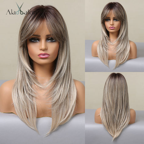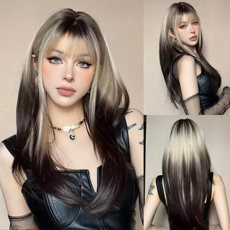 $4403Unit price /Unavailable ALAN EATON Long 2 Tone Wavy Synthetic Wig with Bangs