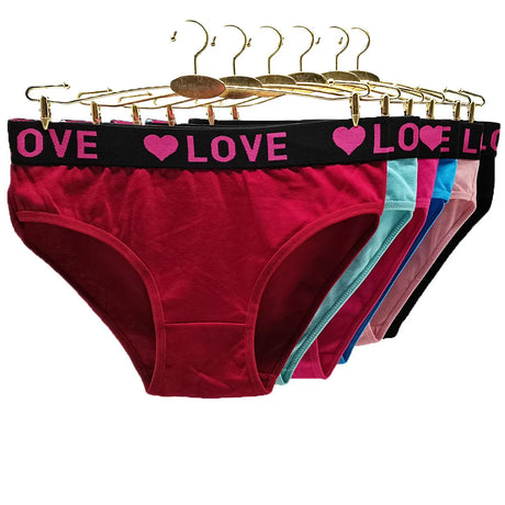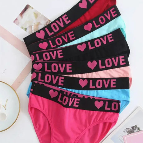 6pcs Mixed Solid Color "LOVE" Panties