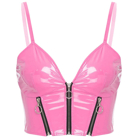 Barbie Doll Glossy Zipper Crop Top