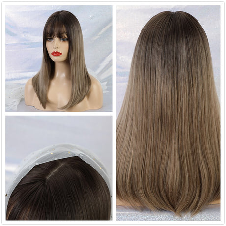 ALAN EATON Ombre Black Blonde Medium Long Wig