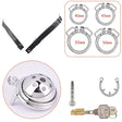 Smooth stainless steel round cage. All four size rings are included, along with cage, anti-off ring & urethral tube which is removable. Definitely everything you need to get that perfect fit.