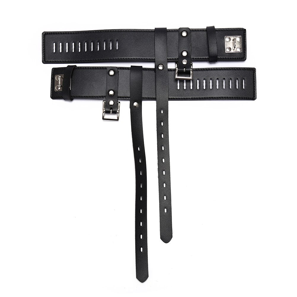 Locking leather cuffs with HIGH HEEL straps, along with two locks.