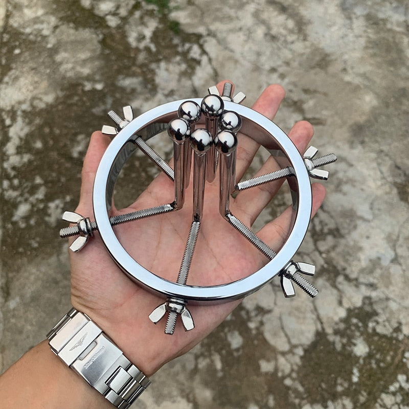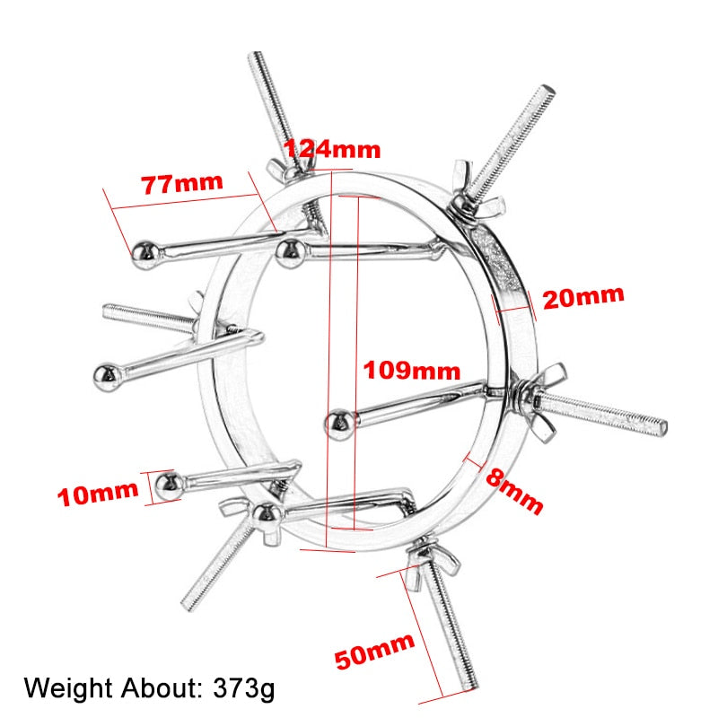 Newest design. Leave you or your sub fully exposed with this special speculum which opens the holes in a wide circle. Adjust numerous wing nuts in order to have more fun and train you or your submissive just the way you think you want it. While being wide open you can tease them with some anal toys or dildos, it is all up to you.