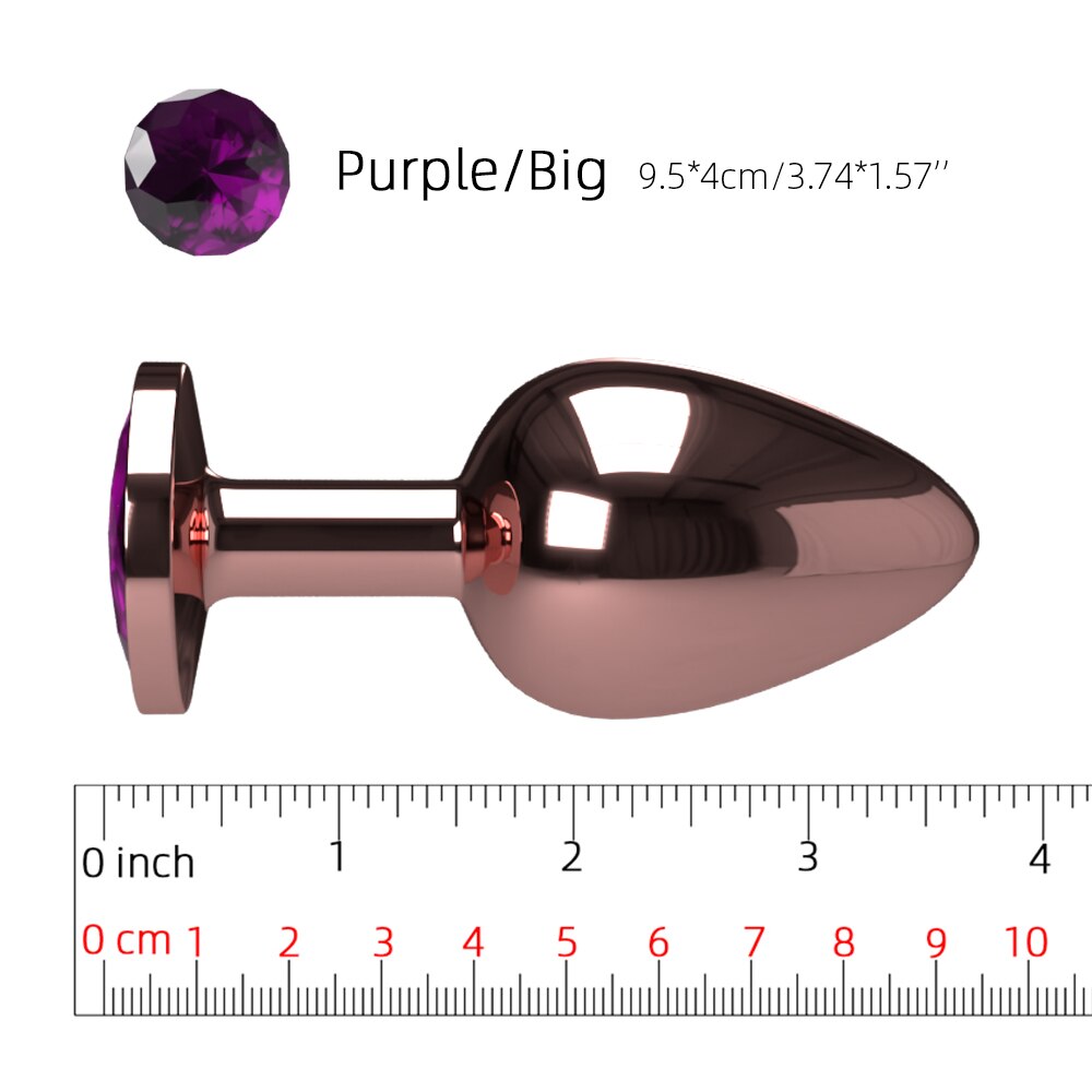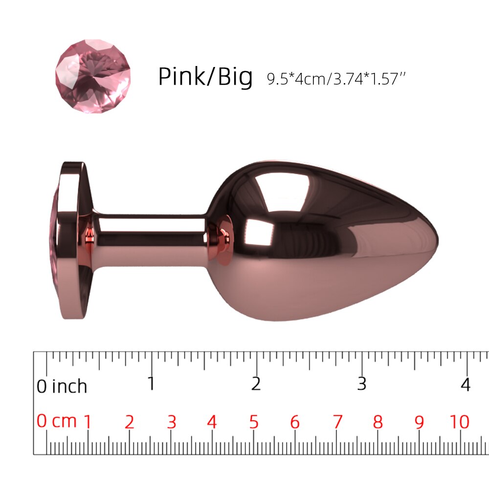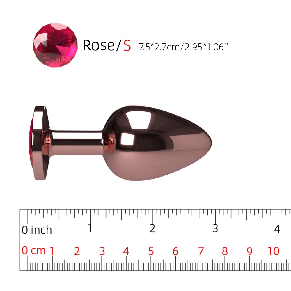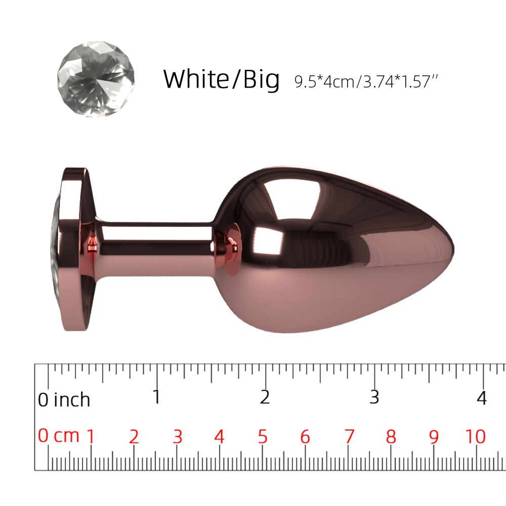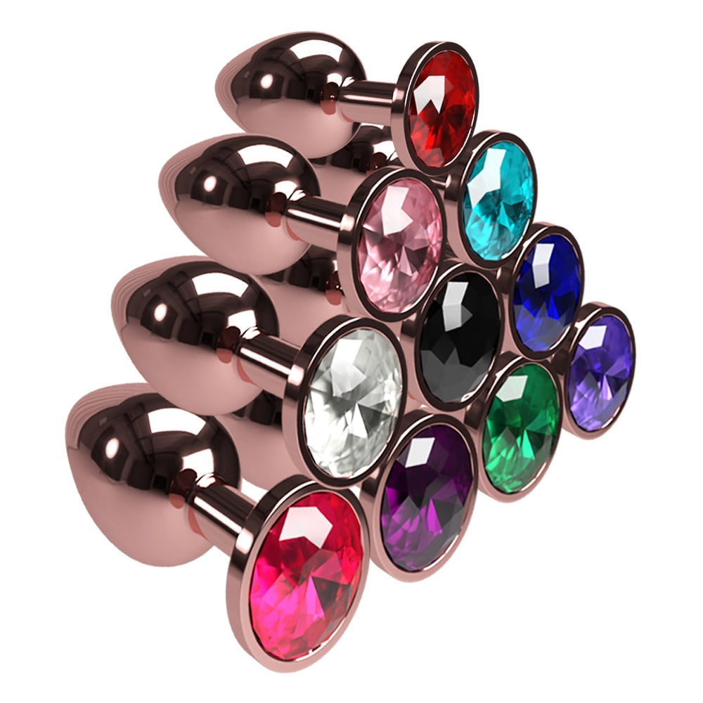 Premium Smooth Metal Rose Gold Crystal Butt Plugs - 3 Sizes
