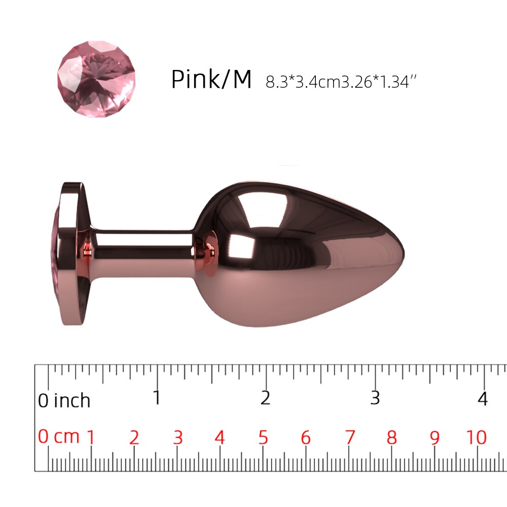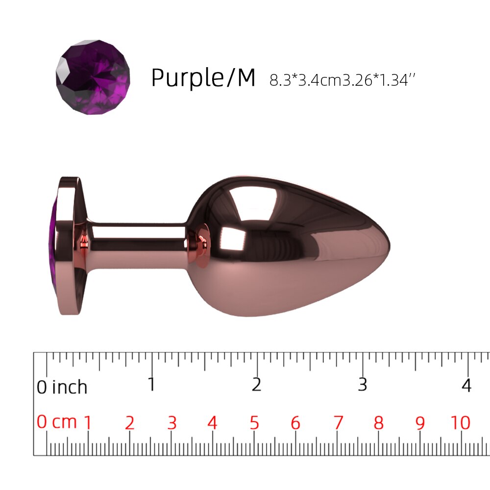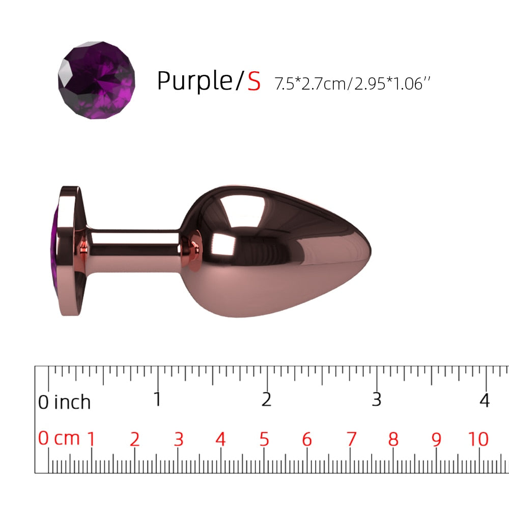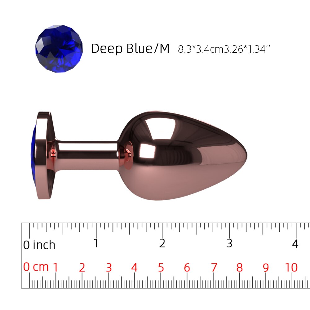 Premium Smooth Metal Rose Gold Crystal Butt Plugs - 3 Sizes