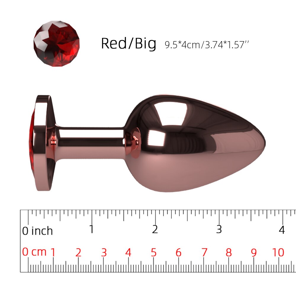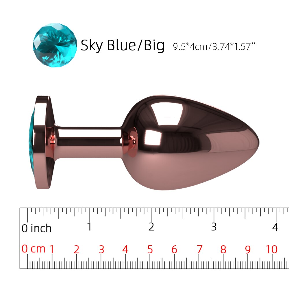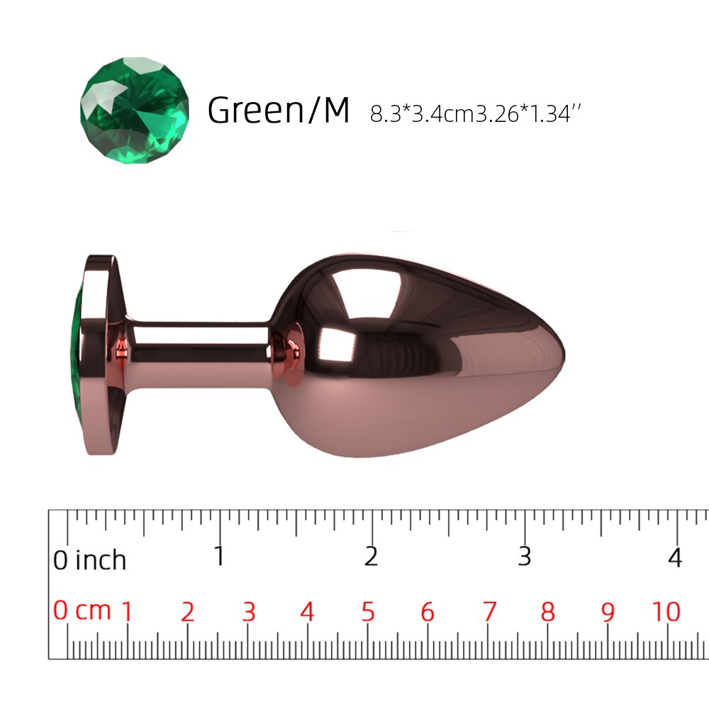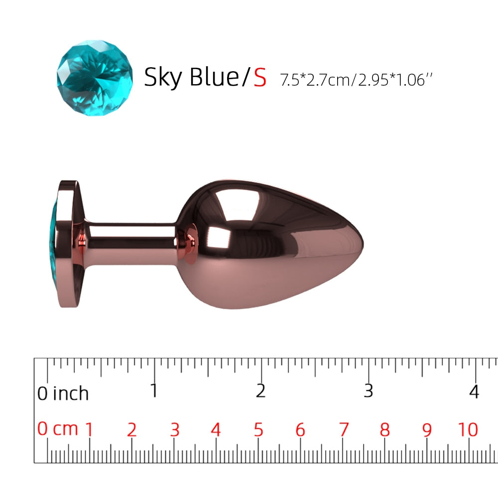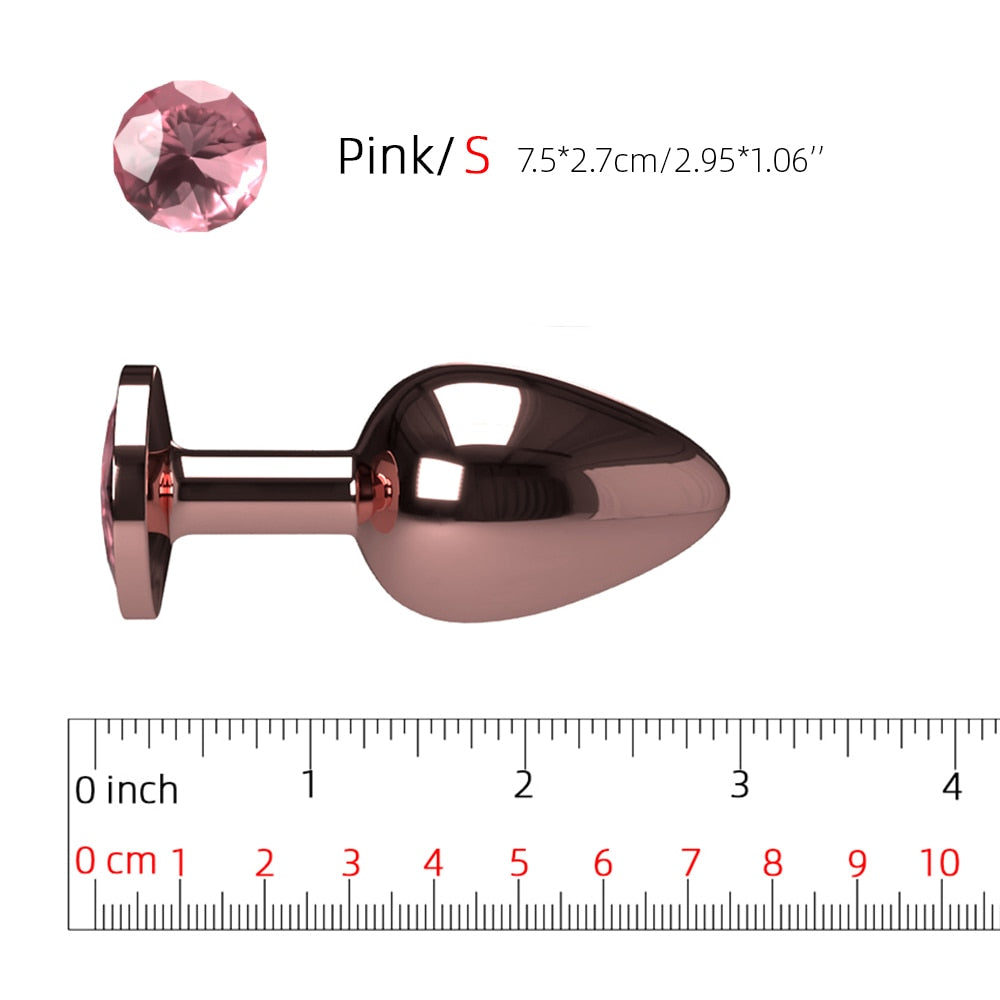 Premium Smooth Metal Rose Gold Crystal Butt Plugs - 3 Sizes