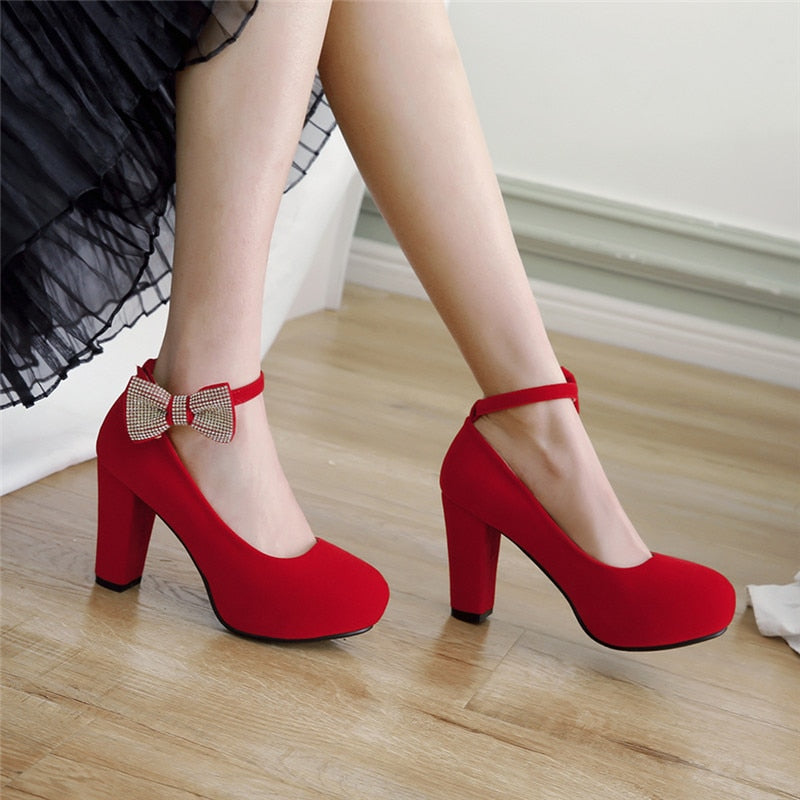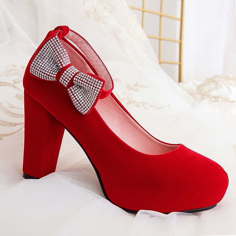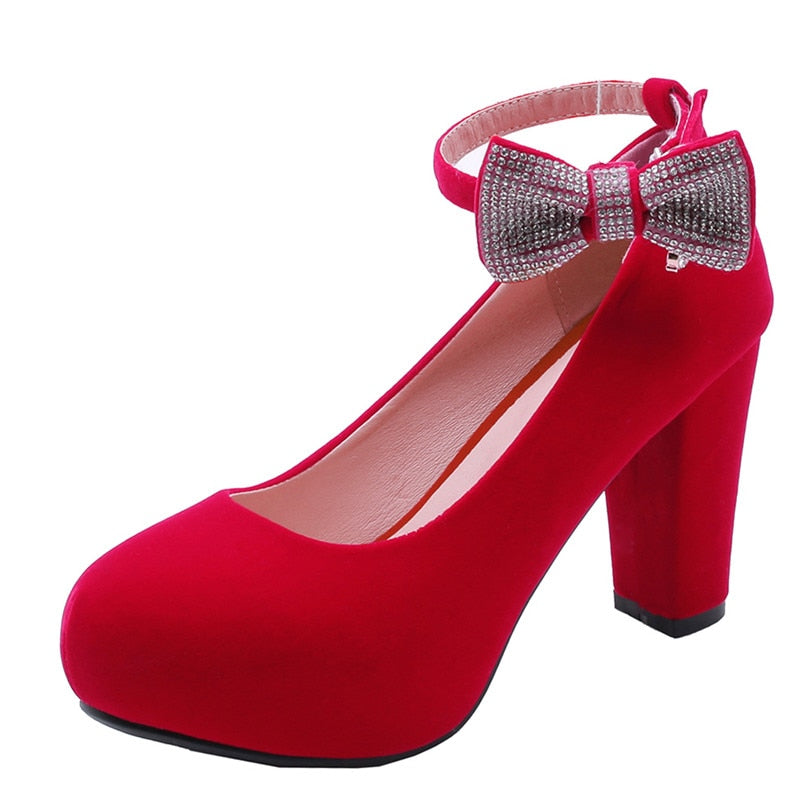 Crystal Bowtie Square Heels With Ankle Strap - Black / 34 is backordered and will ship as soon as it is back in stock.