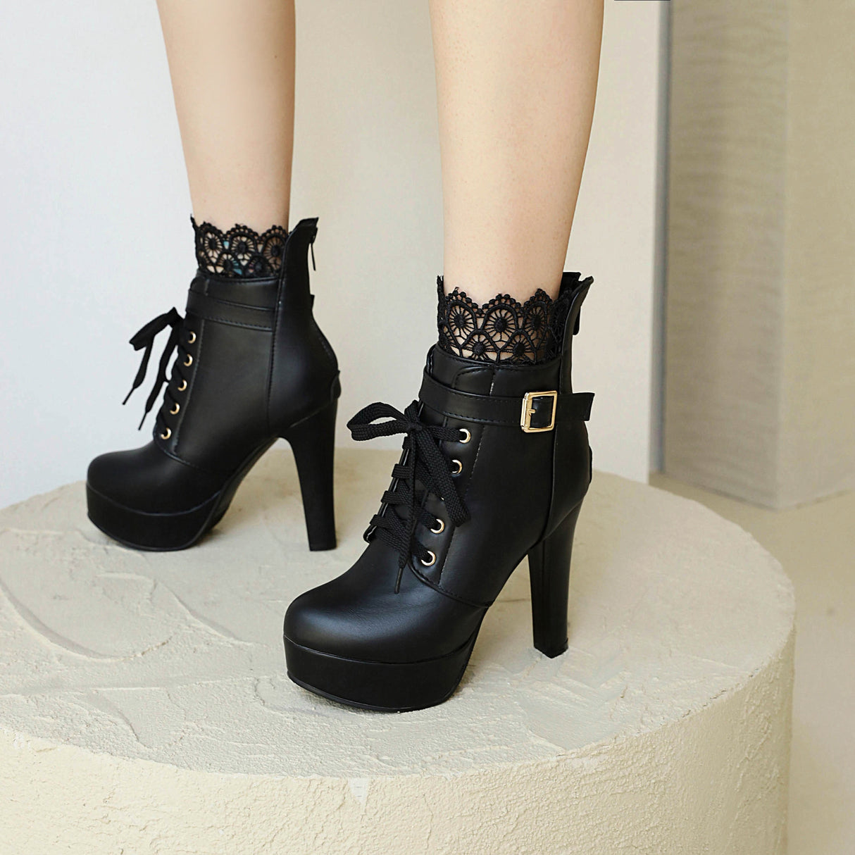 Lolita Platform Spike High Heel Lace up Ankle Boots
