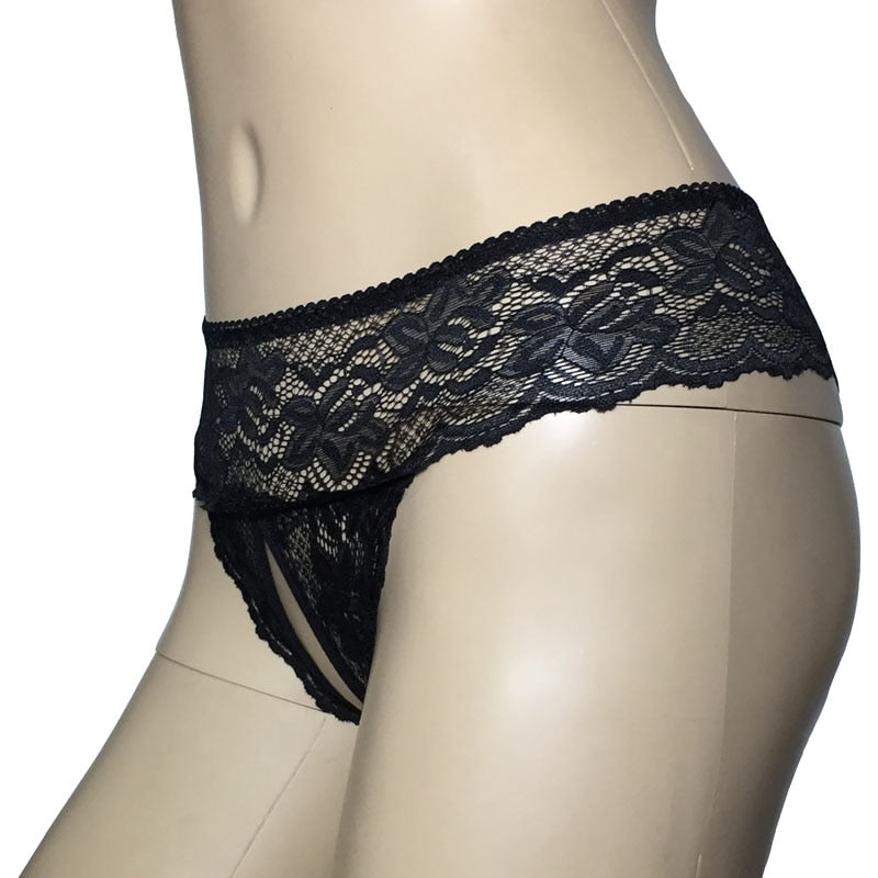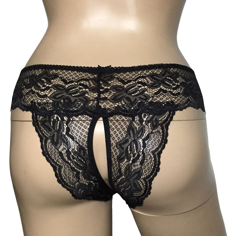 Floral Lace Crotchless Open Butt Panties - Black / XL is backordered and will ship as soon as it is back in stock.