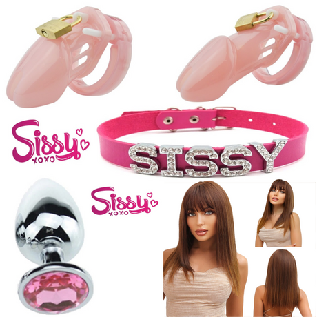 Sissy Supplies Basic Sissy Kit - Cages, Wig, Plug, Collar & Tattoos