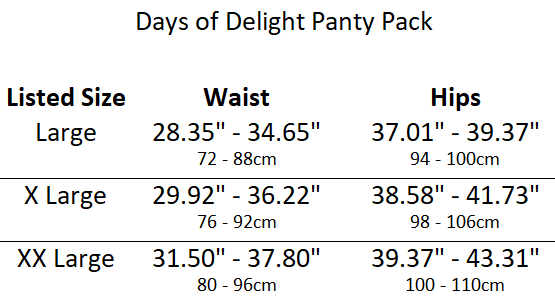 Days of Delight Panty Pack - Large is backordered and will ship as soon as it is back in stock.