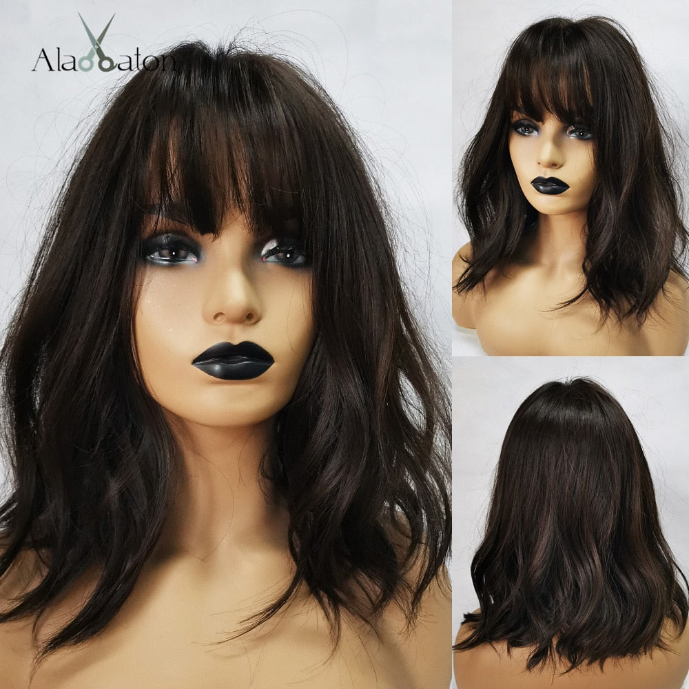ALAN EATON Ombre Black Blonde Medium Long Wig