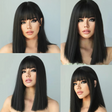 Exude sophistication with the Ebony Muse, a sleek straight bob in rich black with a striking fringe, crafted from high-temperature resistant fibers for a natural 130% density. Designed for daily wear, this wig features adjustable straps for a comfortable fit, blending timeless style with modern elegance.
