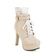 Lolita Platform Spike High Heel Lace up Ankle Boots - Beige / 8 is backordered and will ship as soon as it is back in stock.